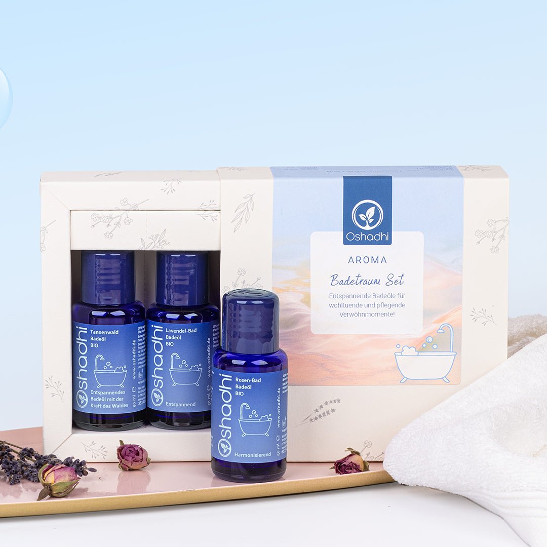 Genuss für Körper, Geist und Seele: Ein Bad ist ein Erlebnis für alle Sinne. Plätscherndes Wasser, heißer Dampf und aromatische Düfte hüllen uns ein und schenken uns Momente voller Geborgenheit. Jetzt als Geschenkset mit drei unterschiedlichen Duftnuancen erhältlich.