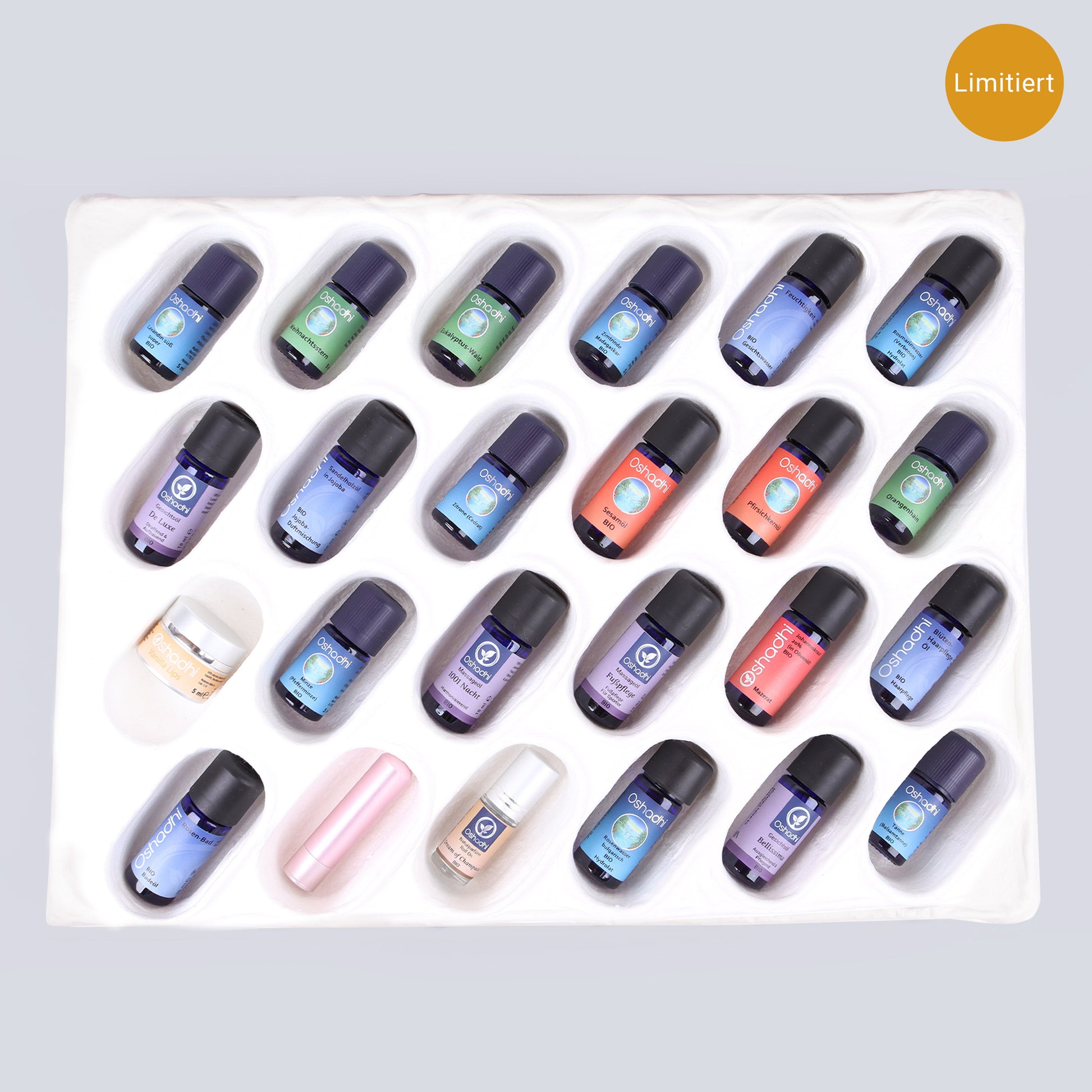 Jetzt im Schachtelkarton mit 24 Flaschen à 5 und 10 ml und Zubehör erhältlich.