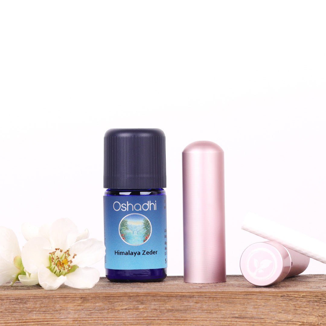 Natürlicher Schutz - Wenn draußen die Blüten kräftig umher wirbeln, unterstützt dich das Oshadhi Set unterwegs mit der vollen Pflanzenkraft des Himalayazeders.