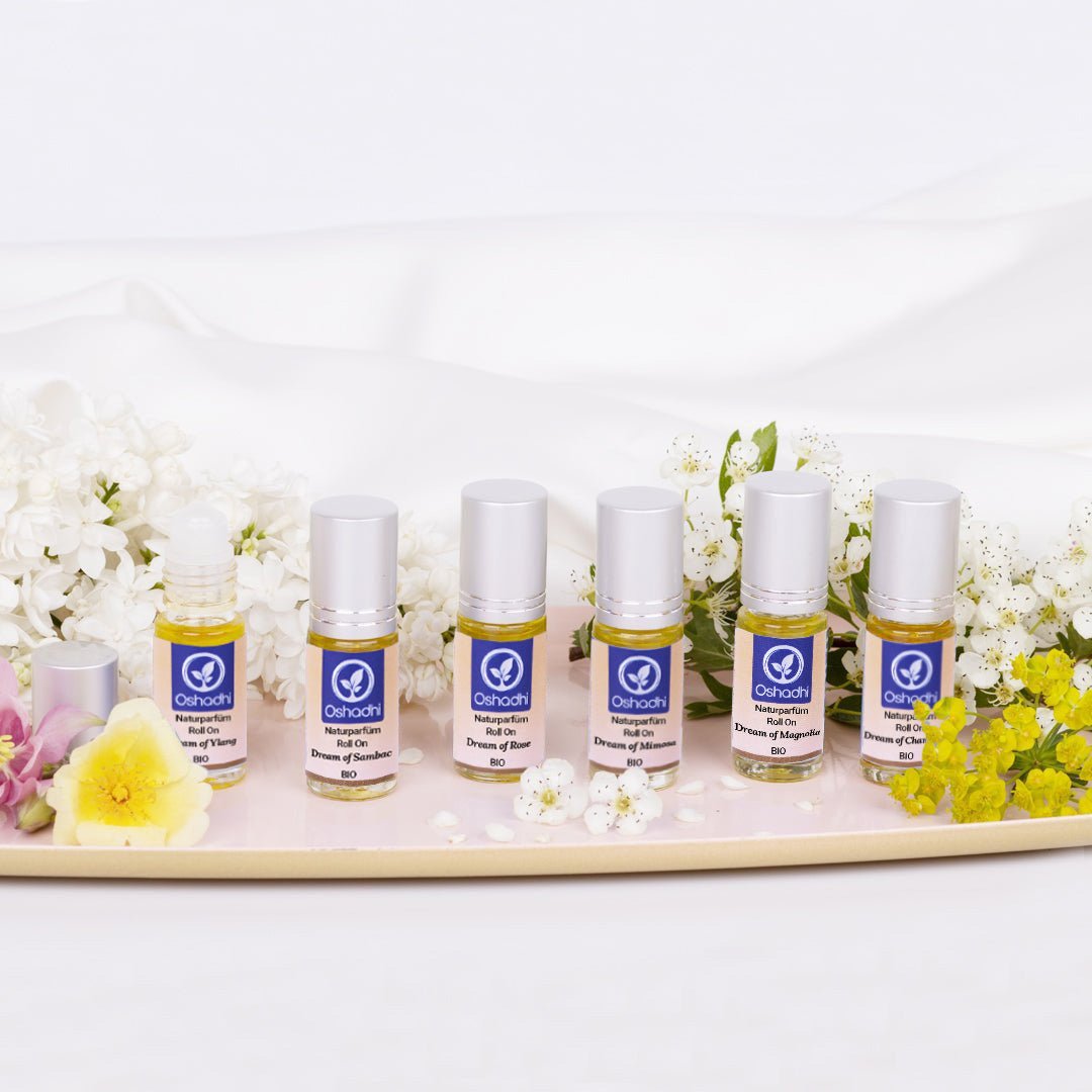 Blütentraum Deluxe - Tauche ein in die Vielfalt der floralen Düfte und entdecke deinen Lieblingsblumenduft. Unsere Roll-Ons haben ideale Handtaschengröße!