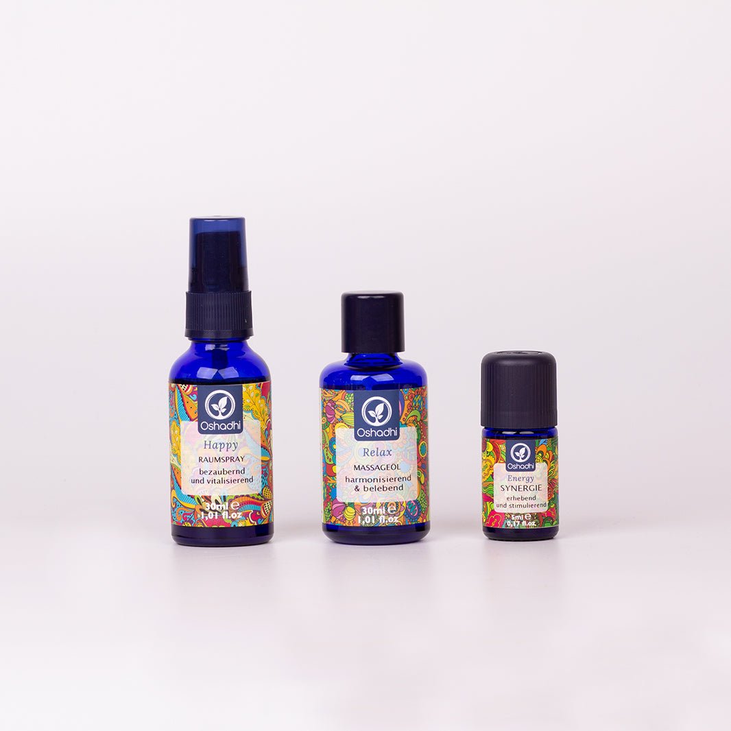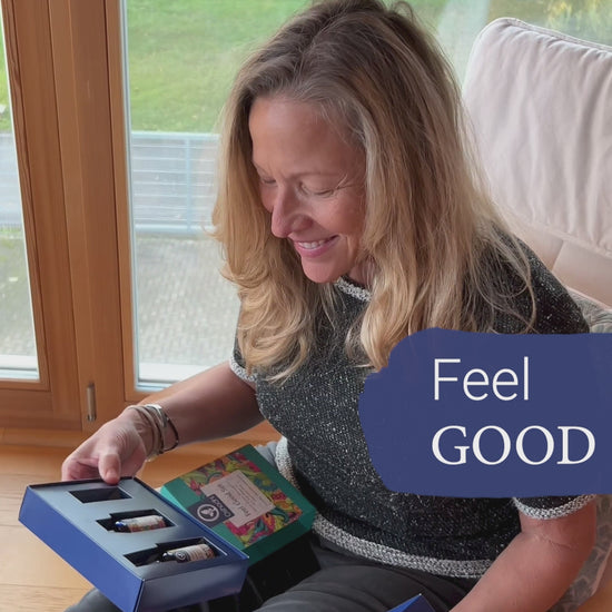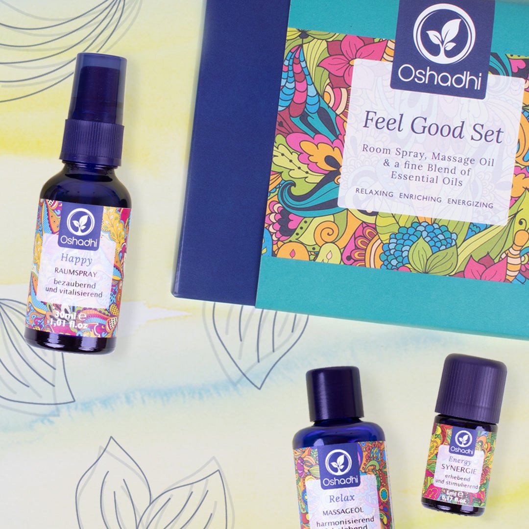 Feel Good – mit den Düften der Natur gutgelaunt, schwungvoll und entspannt durch das ganze Jahr! Das Oshadhi Geschenkset gibt dir Lebensfreude, Entspannung und neue Energie. Anregende Zitrusdüfte, stärkendes Wacholder- und Zypresseöl sowie entspannendes Lavandin sorgen für dein Wohlbefinden.