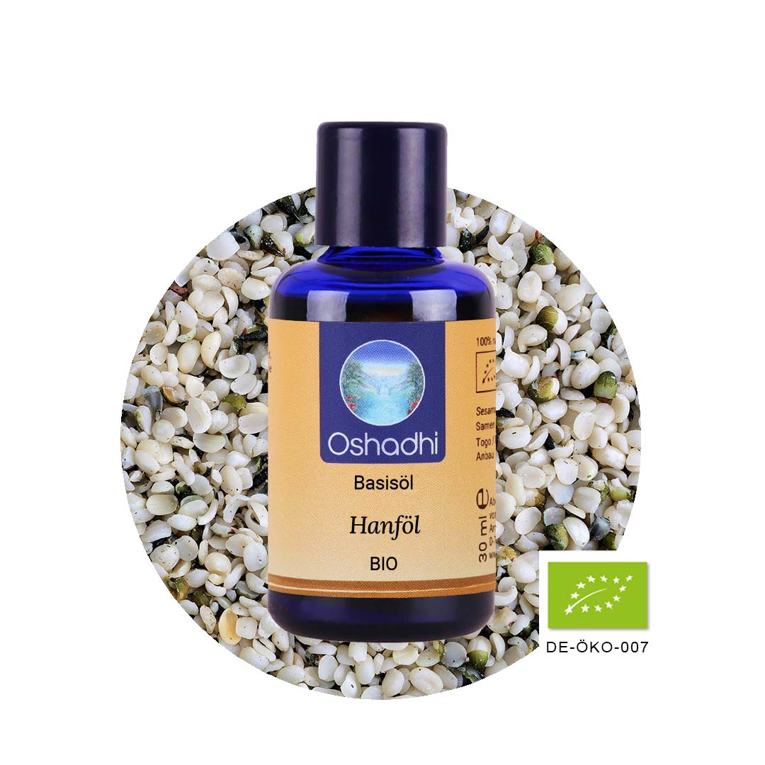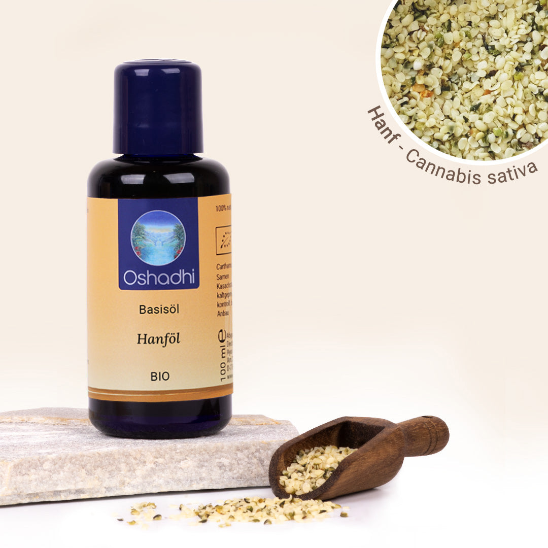 Hanföl ist reich an mehrfach ungesättigten Fettsäuren. Das Basisöl enthält Linolsäure, Alpha-Linolensäure, Gamma-Linolensäure und Omega-3-Stearidonsäure. Dieses Quartett an Fettsäuren stärkt das Gehirn und die Hornschichtbarrieren der Haut, reguliert den Hormonhaushalt, fördert den Aufbau neuer Zellstrukturen und kann den Cholesterinspiegel senken.