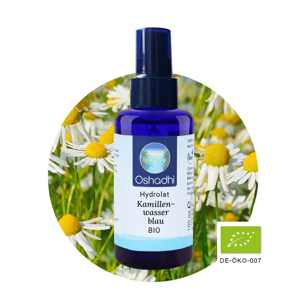 Kamille ist eine der bekanntesten Pflanzen in der europäischen Volksmedizin. Die kleinen Blüten mit weißen Blättern und gelbem Blüteninneren erkennt jeder an ihrem süßlich krautigem Duft. Die chemischen Hauptkomponenten des Korbblütlers sind Sesquiterpene. Pflanzen mit Sesquiterpenen werden gerne in der Kosmetik verwendet, da sie sehr hautfreundlich sind. Mit Ihnen kann das Hautbild verbessert und die Regeneration unterstützt werden. Das Azulen, das bei der Destillation der Blüten entsteht und dem Öl die tiefblaue Farbe gibt, hat sich als besonders hilfreich bei Unreinheiten erwiesen.