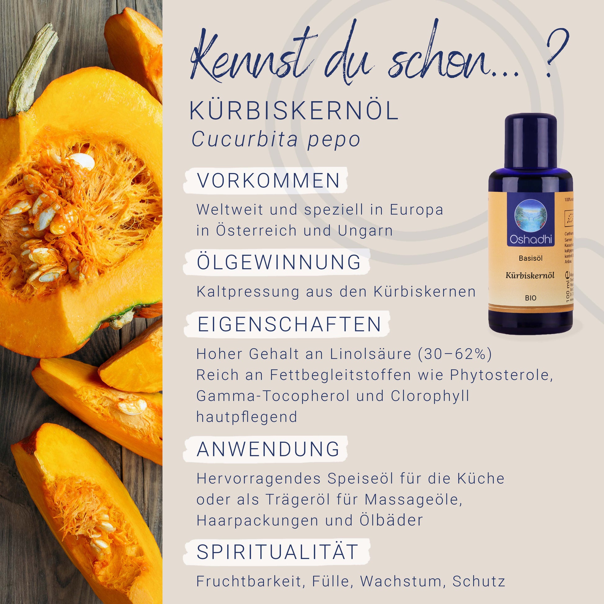 In der Küche verfeinert das aromatische Kürbiskernöl herzhafte und süße Speisen. In der Kosmetik wird es aufgrund seiner hautpflegenden Eigenschaften als Trägeröl für Massageöle, Hautpflegemittel, Haarpackungen und Seifen eingesetzt.