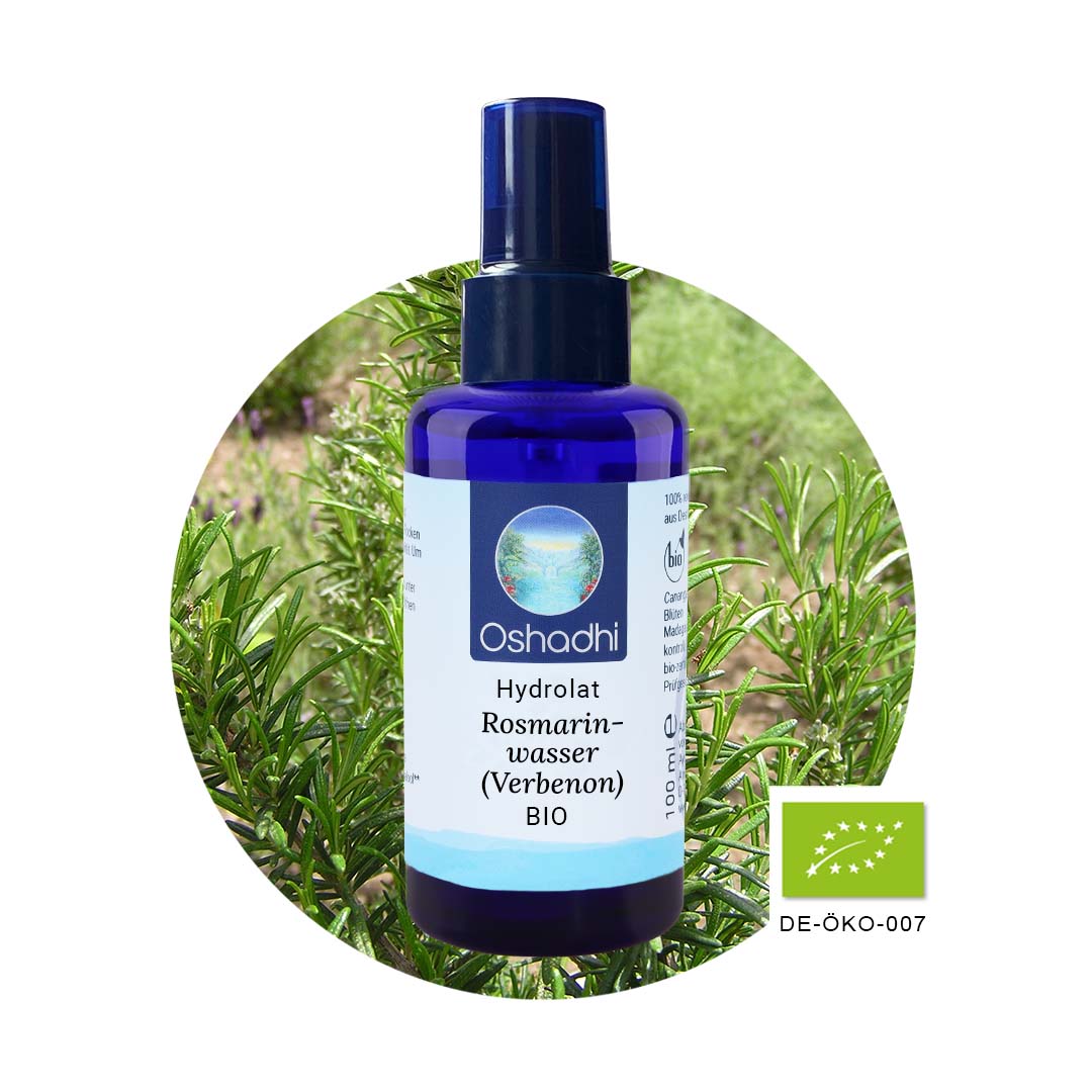 Unser Rosmarinwasser (Verbenon) EU-bio überzeugt durch seine milde, krautig-frische Note und seine besonders hautverträgliche Zusammensetzung. Es wirkt: