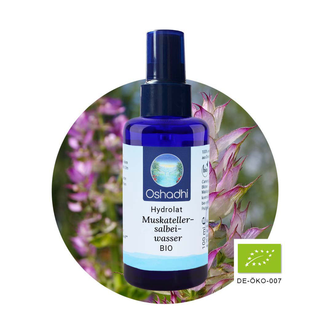 Der Muskatellersalbei gehört zu der Familie der Lippenblütengewächse (Lamiaceae) und ist vorwiegend im Mittelmeerraum und in Russland heimisch. Er wächst als 1m hohe Staude mit großhaarigen und rosettenförmigen Blättern sowie starkduftenden rosa bis weißen Blüten. Aus den Blüten und Blättern wird mittels Wasserdampfdestillation das würzige Pflanzenwasser gewonnen, dessen Hauptinhaltsstoffe die aromatischen Ester sind.