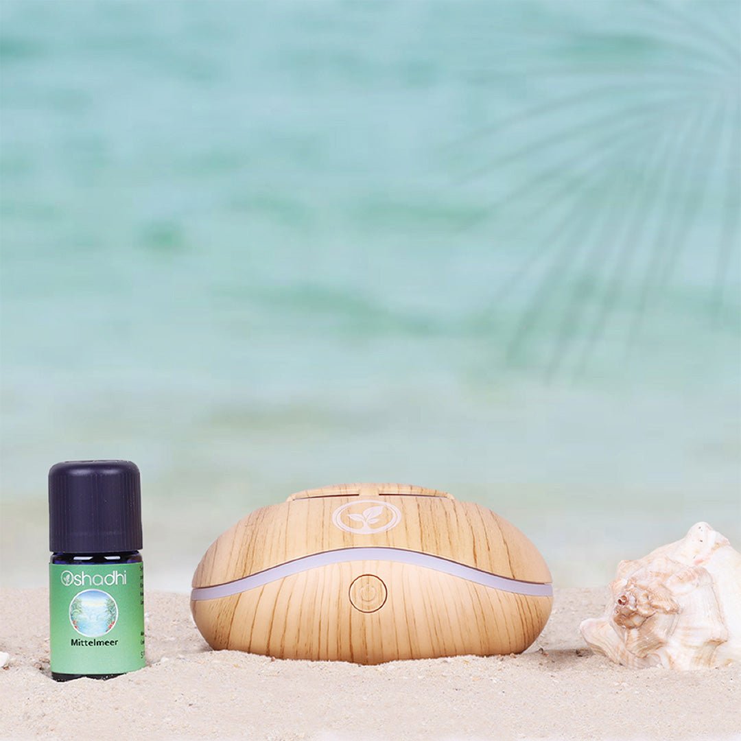 Ambiance Diffuser: Für eine angenehme Raumbeduftung träufelt man einige Tropfen der Duftmischung Mittelmeer auf das innenliegende Filzpad, setzt die Haube wieder auf und drückt den Startknopf. Betrieb ist mit dem einem USB-Netzteil oder auch mit Batterie möglich – inkl. Ersatzpads.