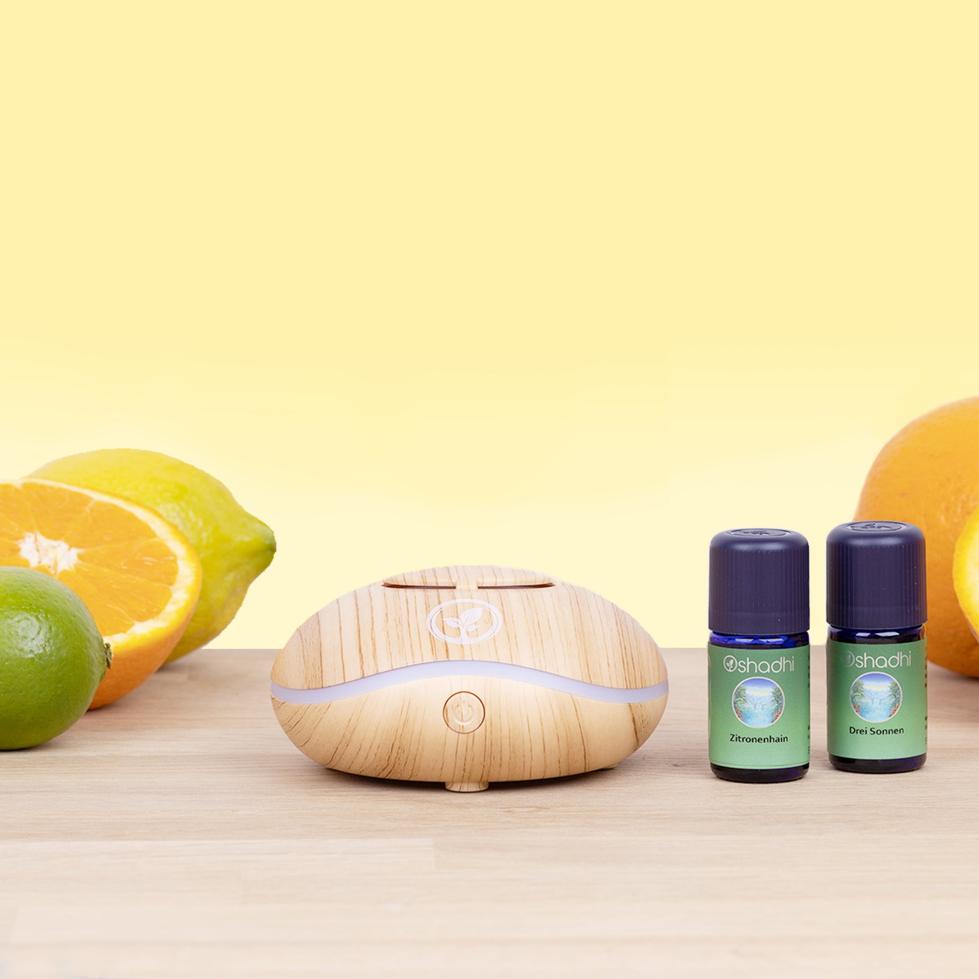 Genieße diese intensive Kraft der Sommersonne mit den anregenden Duftmischungen Drei Sonnen, Zitronenhain sowie dem Oshadhi Ambiance Diffuser in deinem Zuhause, an deinem Arbeitsplatz oder auch unterwegs!