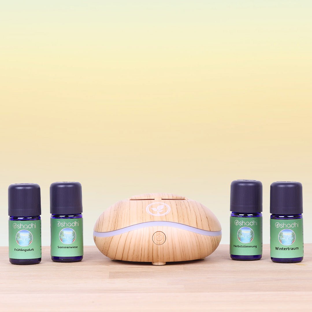 Der Wechsel der Jahreszeiten. Unsere Emotionen können innerhalb eines Tages verrückt spielen. Wir hoffen, sind voller Leichtigkeit, manchmal wehmütig oder zutiefst melancholisch. Wer kennt dies nicht? Es fühlt sich wie Frühling, Sommer, Herbst und Winter in einem an. Mit dem Jahreszeiten Diffuser Set und den Duftmischungen: Frühlingsduft, Sommerwiese, Herbststimmung und Wintertraum kannst du deine Emotionen beruhigen und zu jeder Zeit deine Lieblingsstimmung zu Hause genießen.