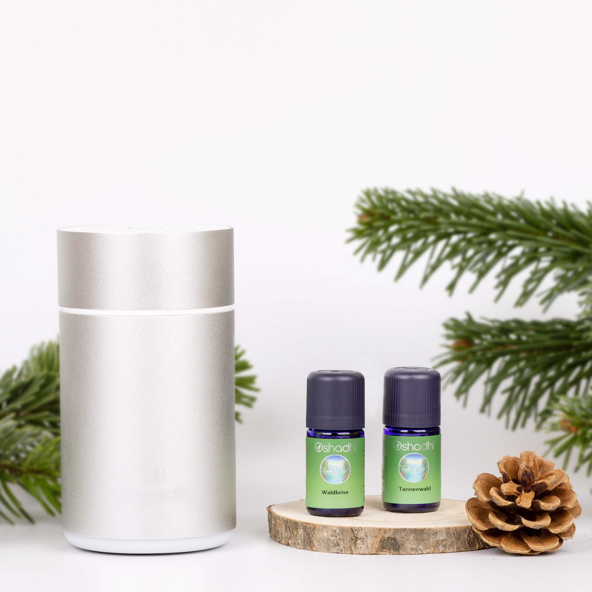BADEN ZWISCHEN BÄUMEN – seit Urzeiten übt der Wald eine faszinierende Anziehungskraft auf uns Menschen aus. Die Duftessenzen von Koniferen wie Fichten, Tannen, Kiefern, Zedern oder Wacholder können uns erden und helfen uns dabei, zentriert und fokussiert zu bleiben. Zudem wirken sie reinigend und beruhigend auf unser Nervensystem. Mit dem Oshadhi Waldbaden Diffuserset und den beiden Duftmischungen Tannenwald und Waldbrise holst du dir die Kraft des Waldes nach Hause, an deinen Arbeitsplatz oder in dein Auto und kannst so die wohltuende Wirkung des Waldes jederzeit genießen!