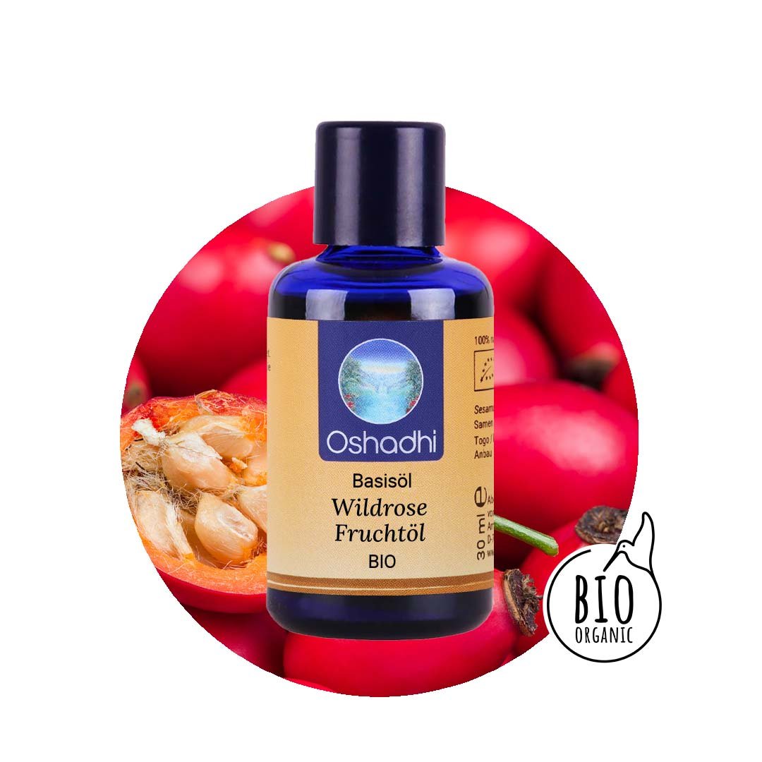 Das Wildrose Fruchtöl weißt einen hohen Gehalt der Alpha-Linolensäure auf und ist reich an Carotinoiden und der Trans-Retinolsäure. Die Kombination dieser Inhaltsstoffe aktiviert die Zellerneuerung und die Kollagensynthese, schützt vor freien Radikalen und kann die Narbenheilung fördern.